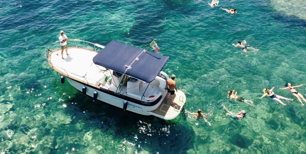 Palazzo D’Avalos (prison on the sea), Grotta del “Bue Marino” in Punta dei Monaci, Corricella (stop for photos on the boat), Carbonchio Bay and Bourbon Palace, Chiaiozza and its natural swimming pool, Vivara Island, Postino beach (Pozzovecchio), Punta Pioppeto Lighthouse and much more.